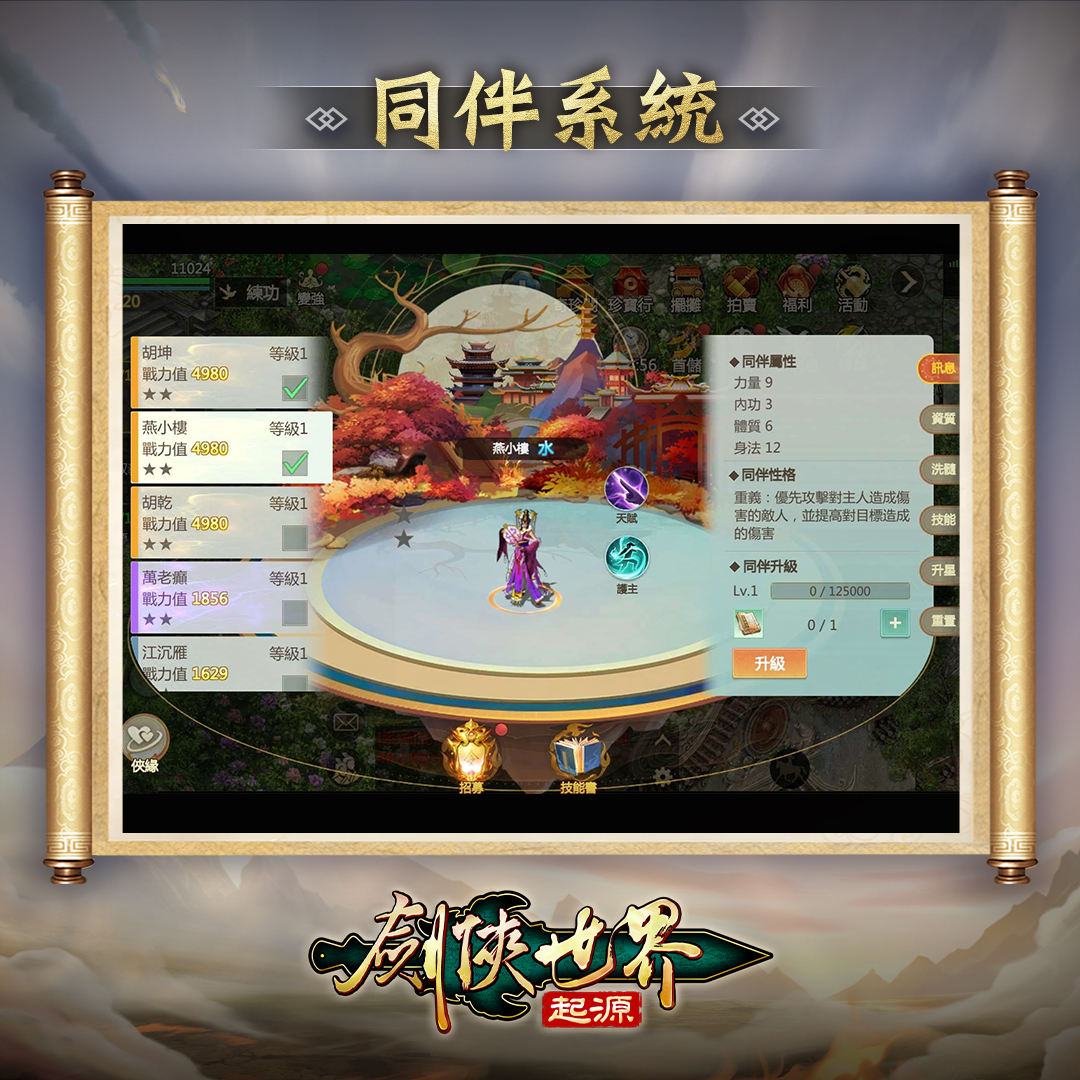 - 解鎖同伴後系統後,隨著少俠等級提升,出陣同伴數量也會提升,最多可以選擇 4 個同伴出陣